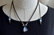 ペンダントトップ部分には、水晶、ラブラドライトのビーズをあしらい、女性らしさの中に個性が光るデザインに仕上げました。