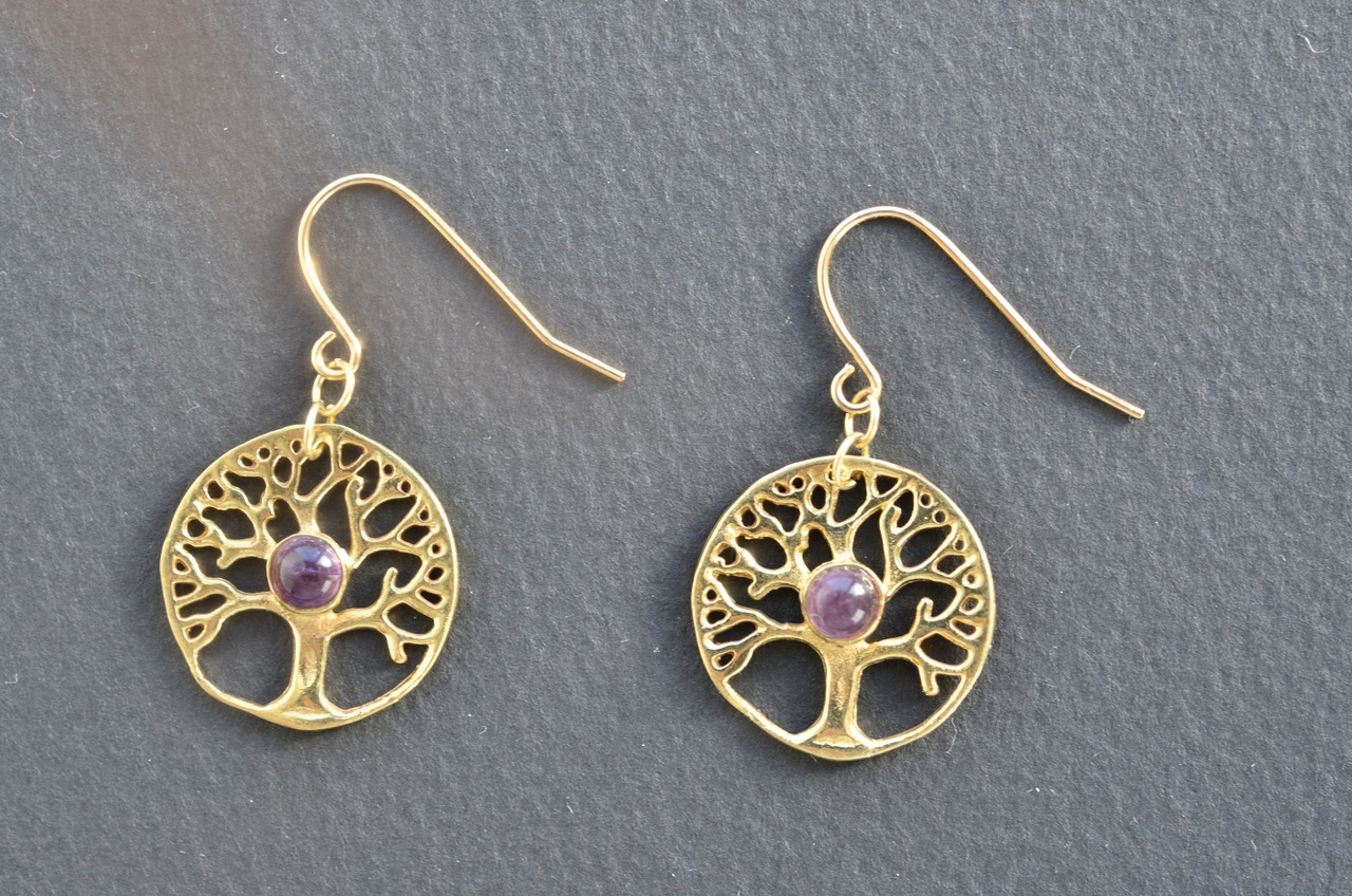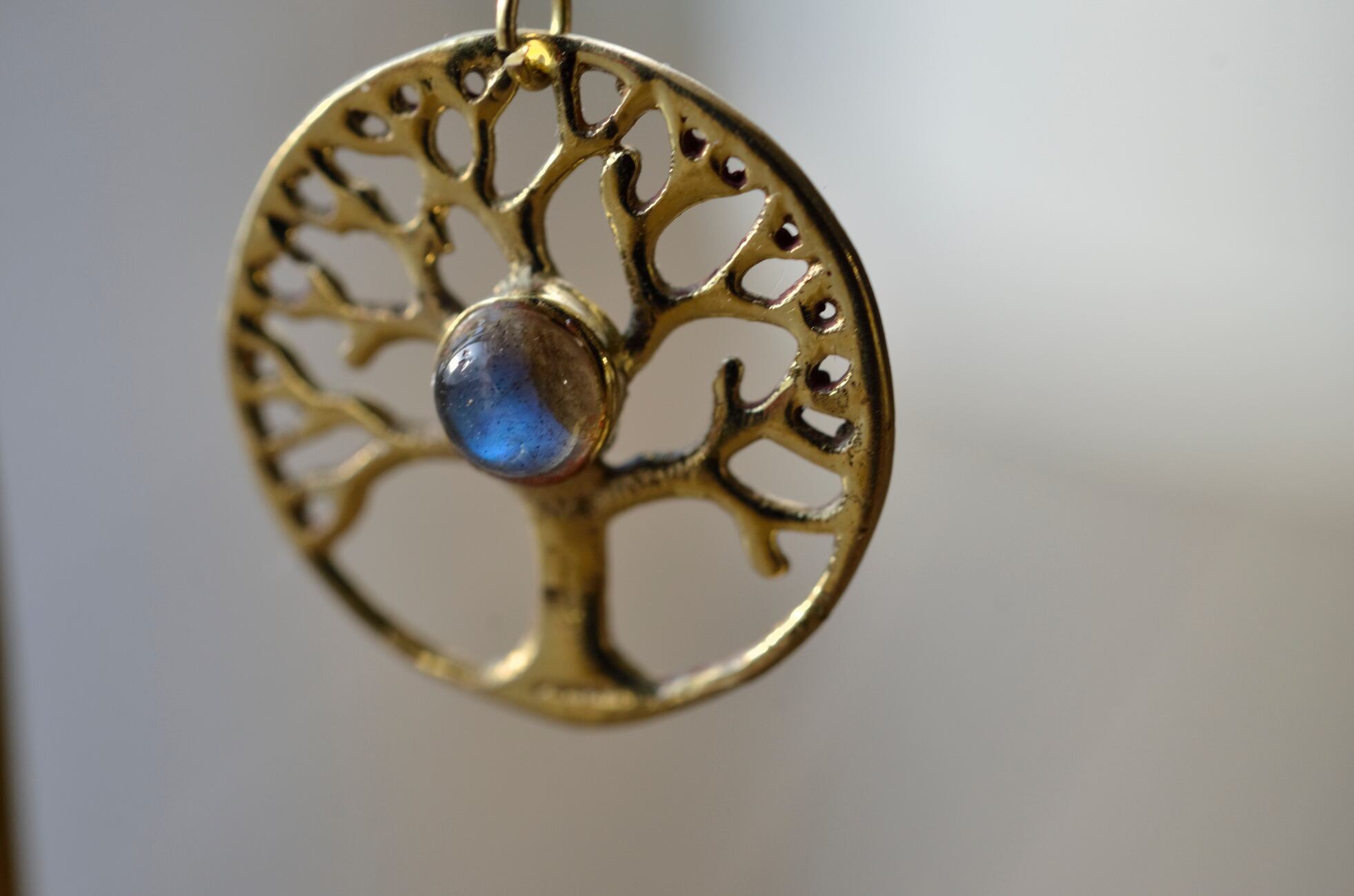 ツリーオブライフ(生命の樹) ラブラドライト/アメジスト/ターコイズ/ラピスラズリ/オニキス/ガーネット ゴールドピアス