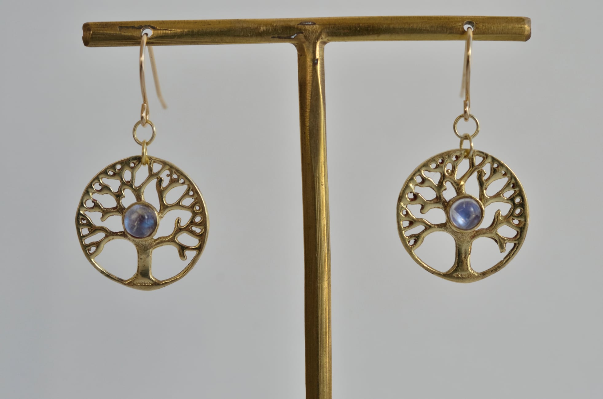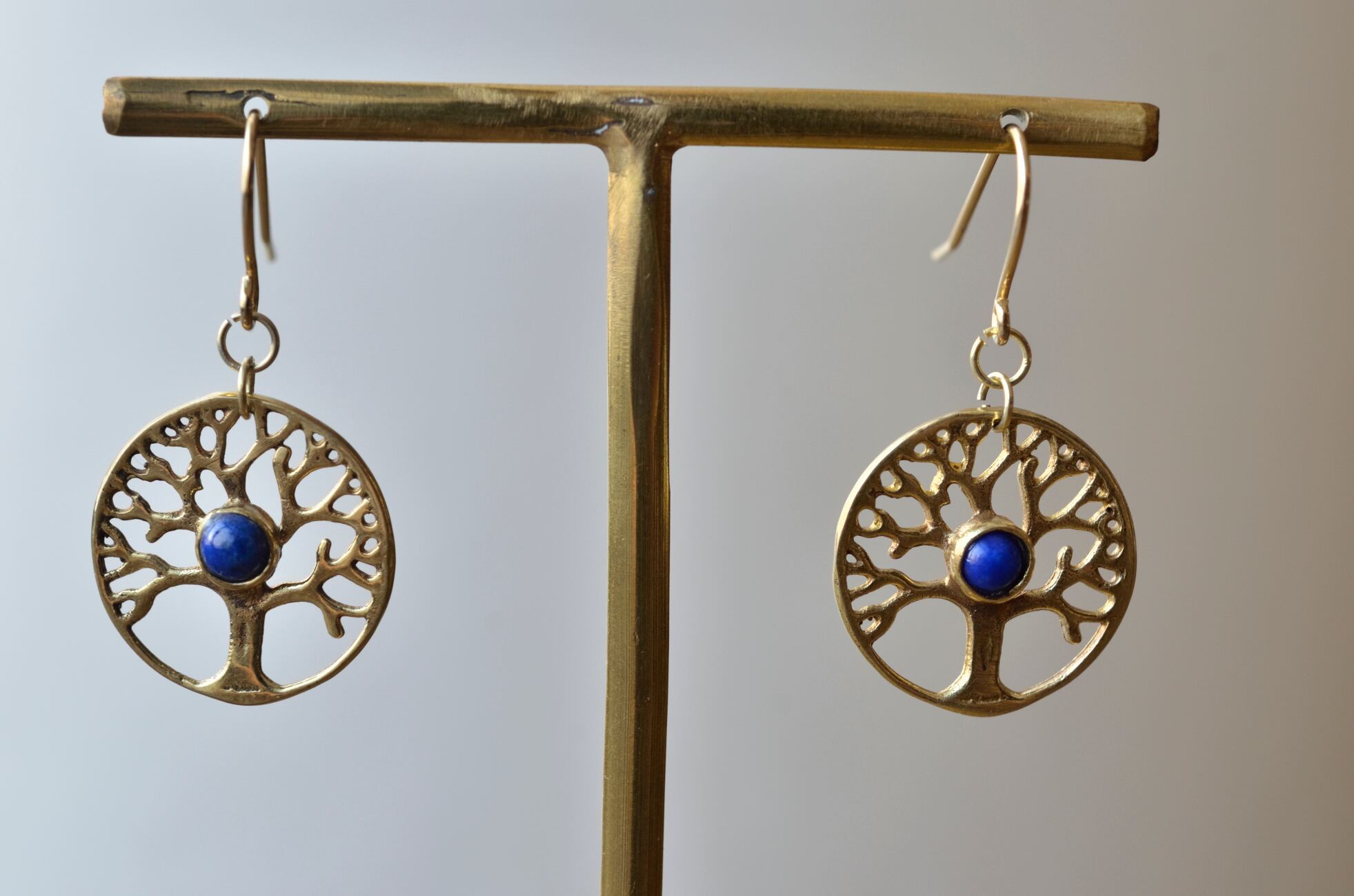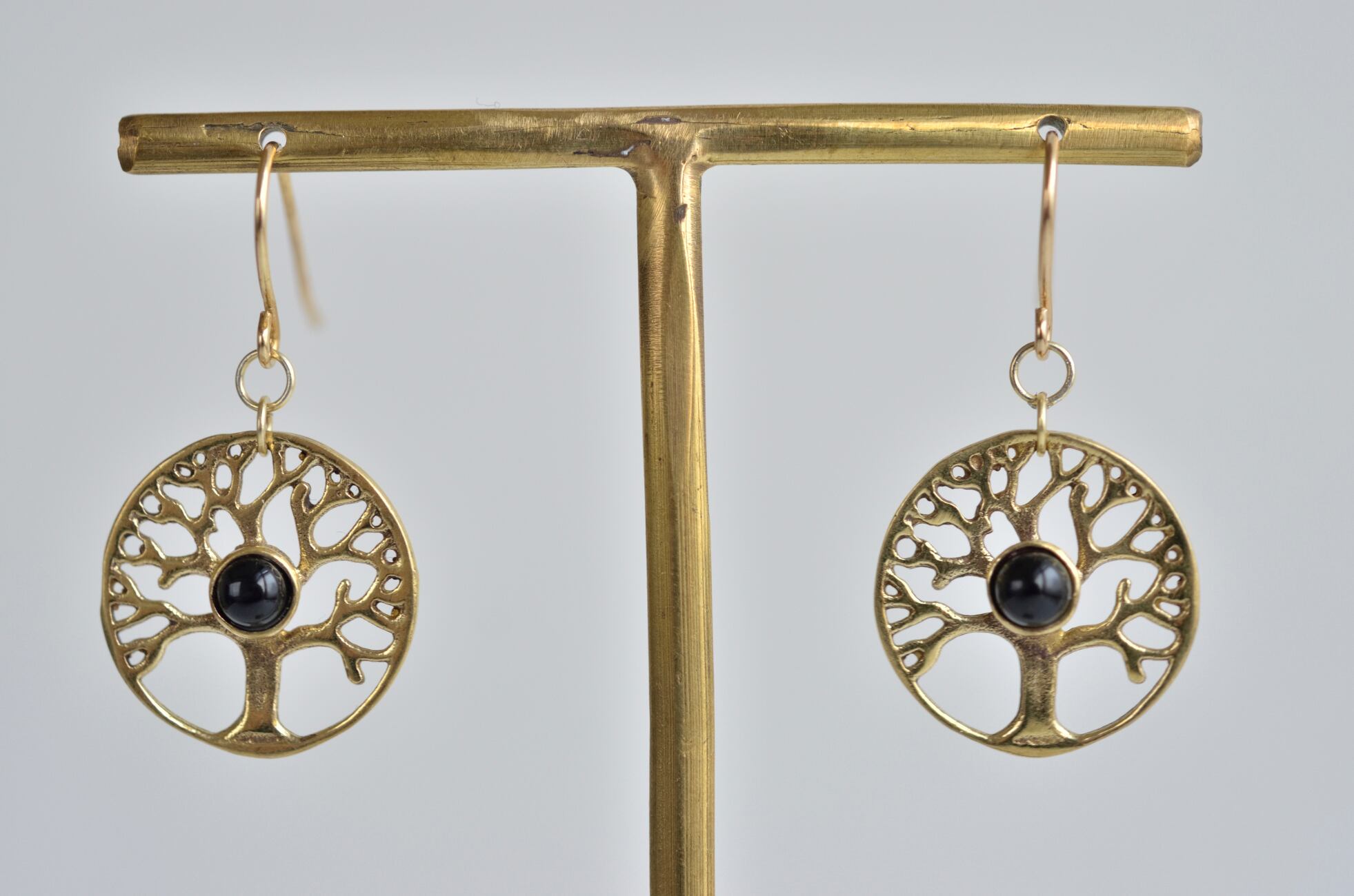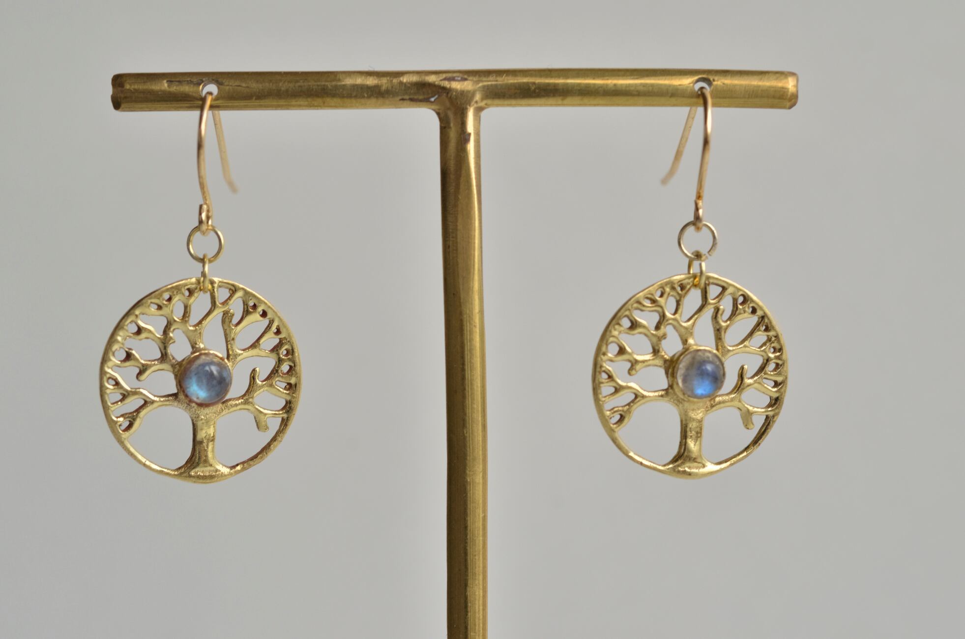 ツリーオブライフの樹木の可愛いモチーフに、ゴールドが上品さをプラス。小粒の天然石が耳元でキラキラと輝き、気品ある華やかな印象を与えてくれます。エスニックやボヘミアン調のお洋服からシンプルな装いまで、幅広い装いにお使い頂けます。