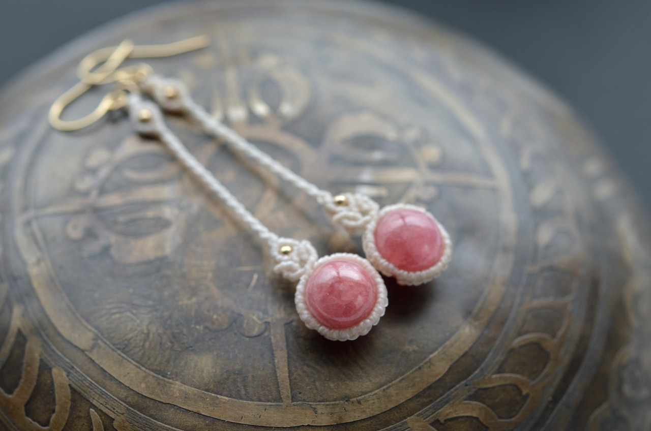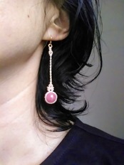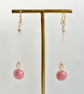 薔薇のような鮮やかなピンク色が美しいインカローズビーズに、14kgfビーズをあしらった上品で、シンプルなマクラメピアス。
