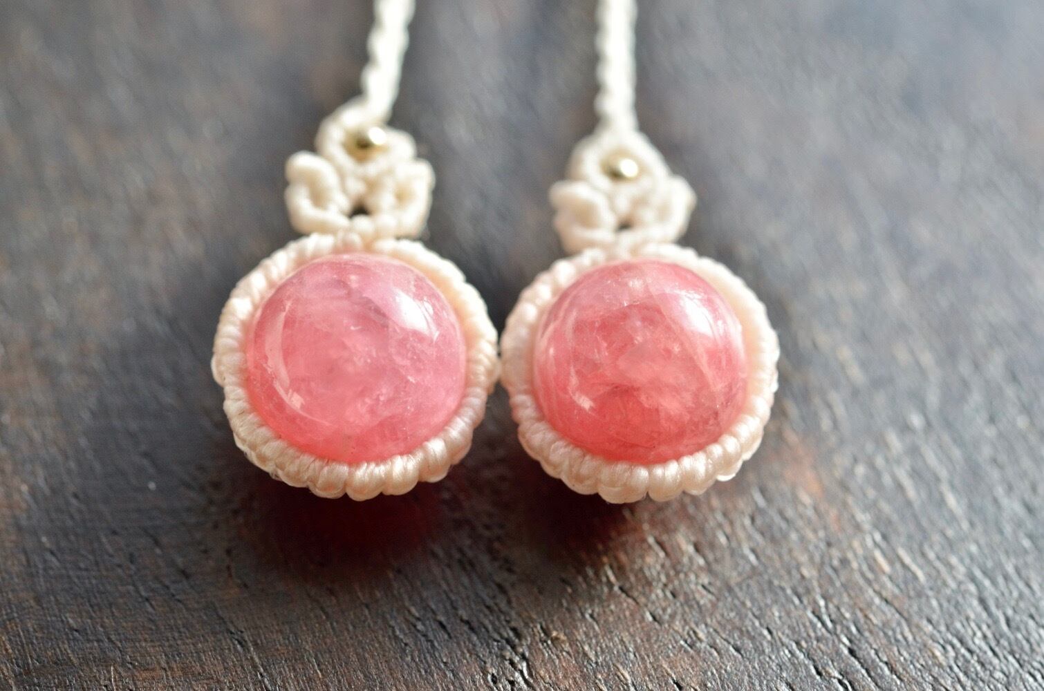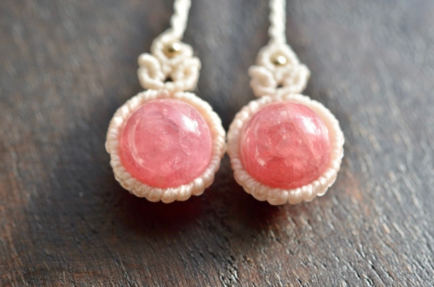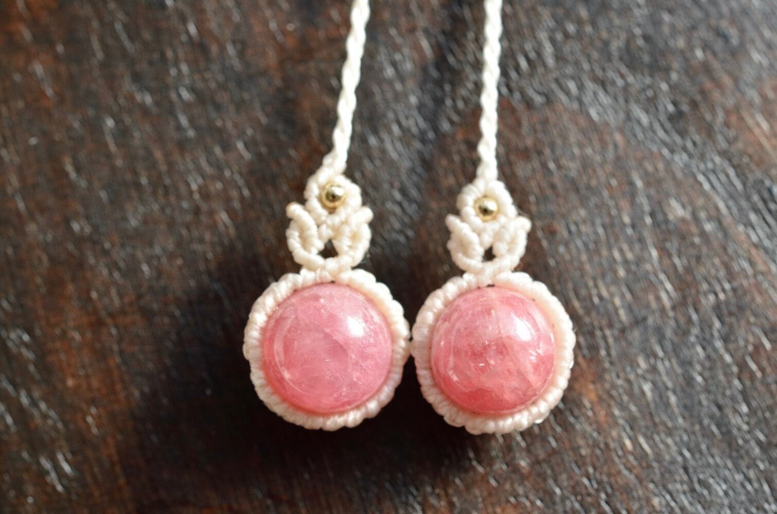 インカローズ(ロードクロサイト) シンプルマクラメピアス