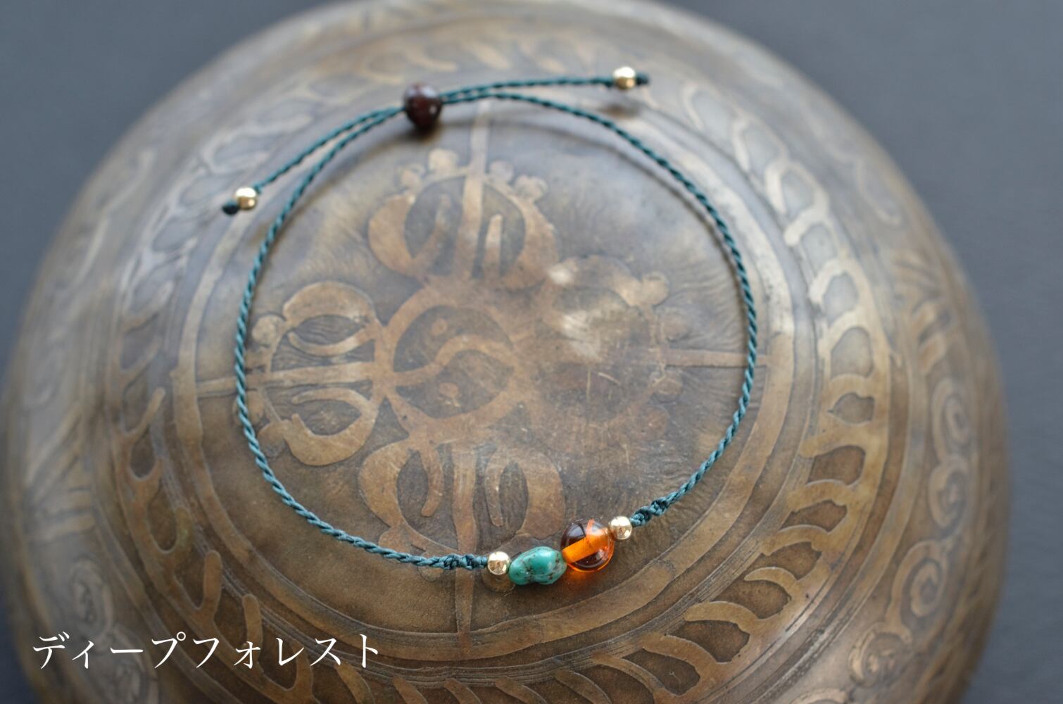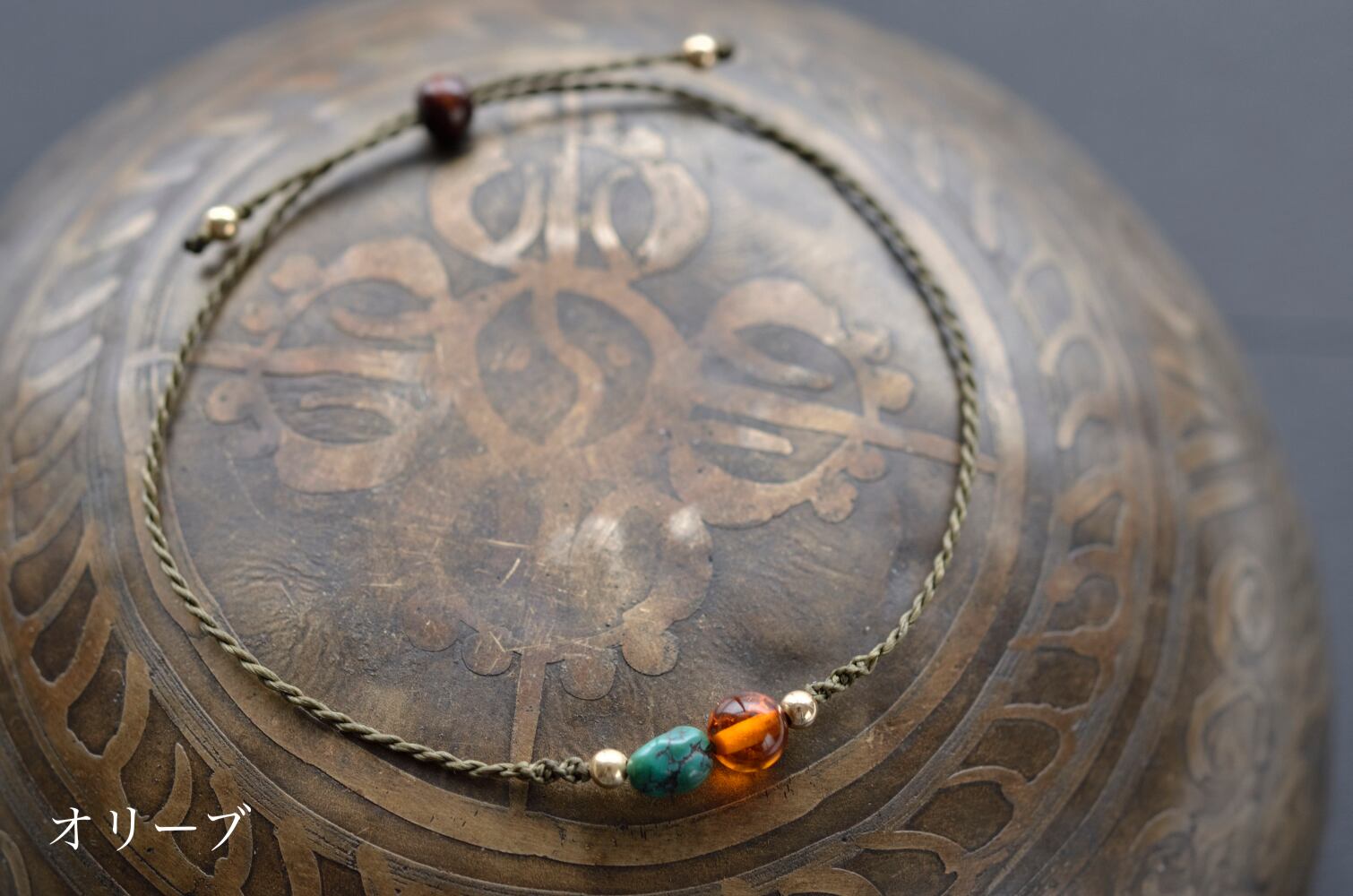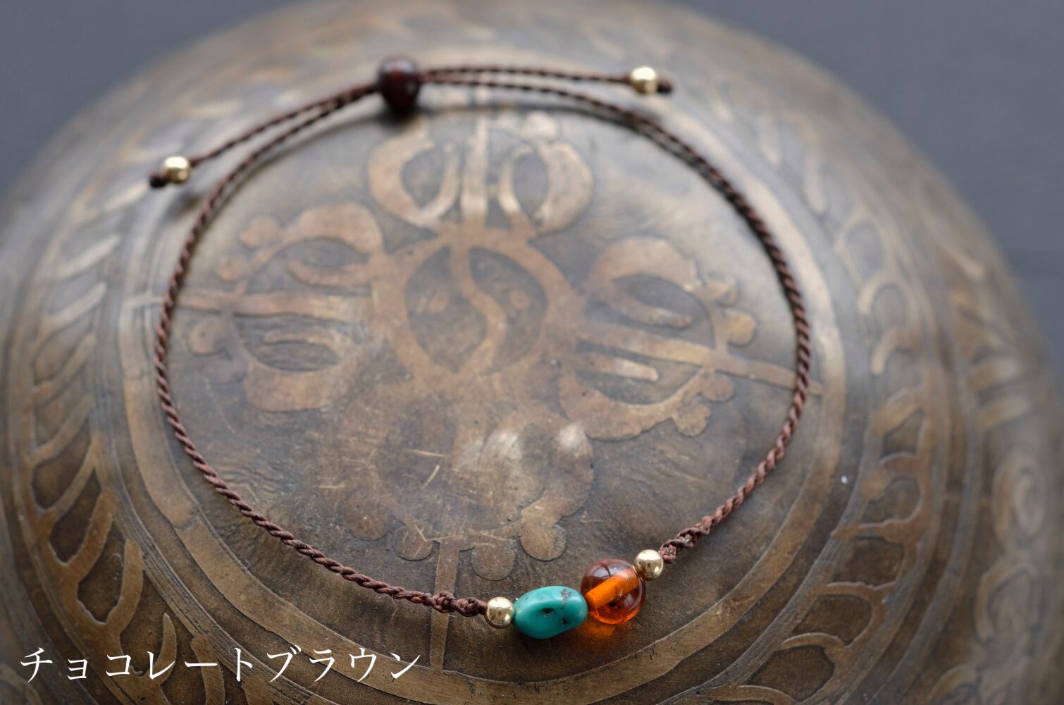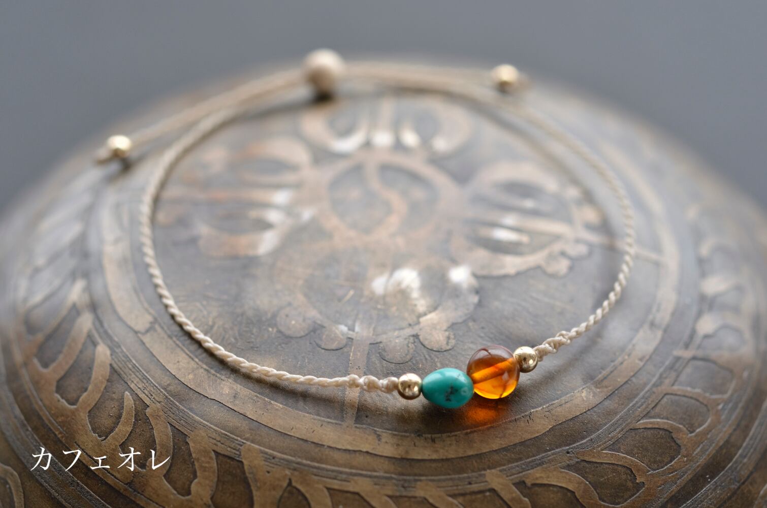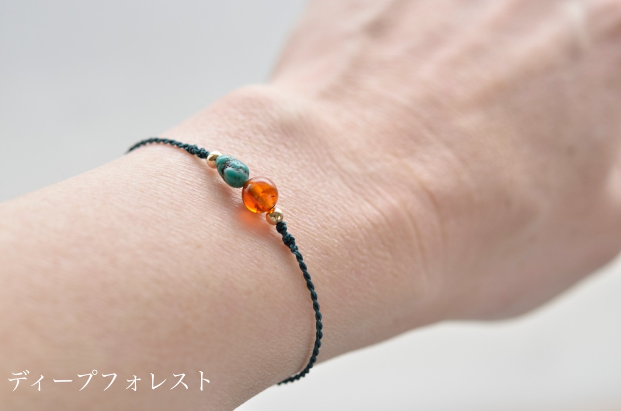 小粒のターコイズビーズとアンバービーズをアクセントにしたシンプルなマクラメブレスレット。極細糸で編み上げている為、上品な印象で、柔らかく、つけ心地の良いブレスレットです。肌馴染みの良い9色をセレクトし、日常使いから、ちょっとしたお出かけのアクセントに、幅広いシーンでご使用頂けます。