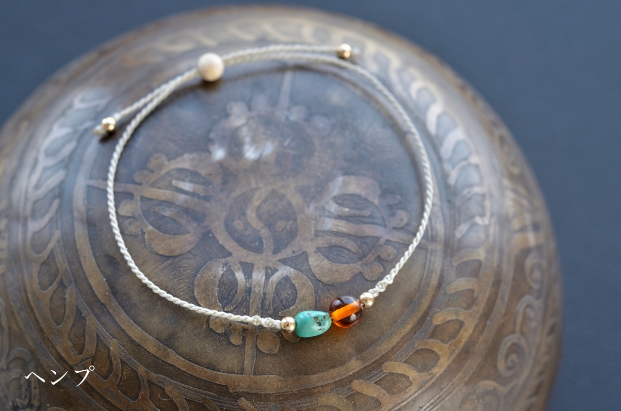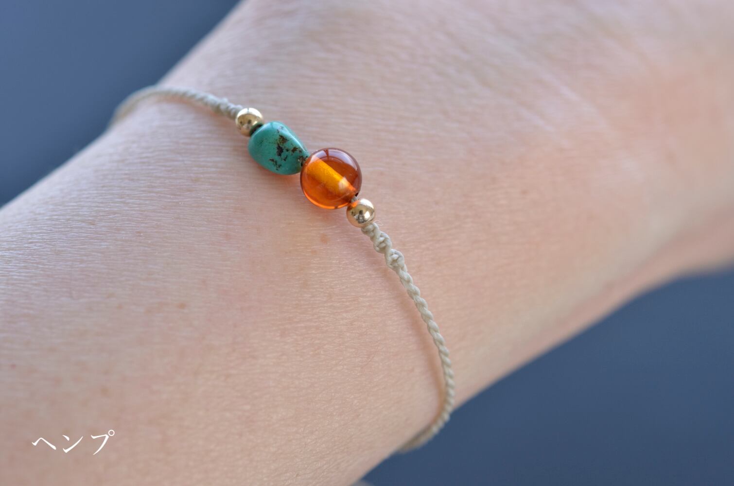 ターコイズ&アンバー シンプルマクラメブレスレット